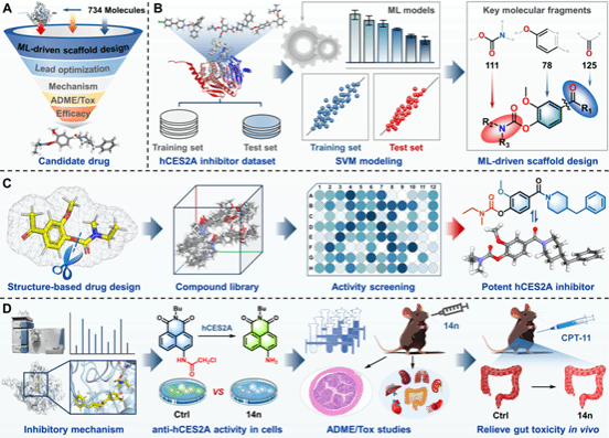 桑志培/黄姝姮副教授与上海中医院大学葛广波教授研究团队合作在药物化学权威期刊《Journal of Medicinal Chemistry》(影响因子6.9,中国科学院大类一区)发表了题为“AI-Driven Discovery of Highly Specific and Efficacious hCES2A Inhibitors for Ameliorating Irinotecan-Triggered Gut Toxicity”的研究论文,在伊立替康诱导的肠道毒性治疗领域取得重要突破。