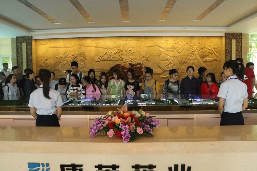 2017级药学专业学生在宋彦廷副院长、胡文婷老师、李军舰老师的带领下到达康芝药业股份有限公司进行参观实习,公司总经理高洪常、集团工会主席滕英军、生产部经理张凯、人力资源部经理高春燕、行政部副经理闫婷婷等领导热情接待。