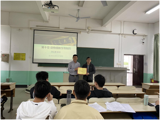 2018级生物技术专业学生讲授《细胞工程》课程。学院副院长韩谦教授代表学院为李志勇教授颁发“努努影视