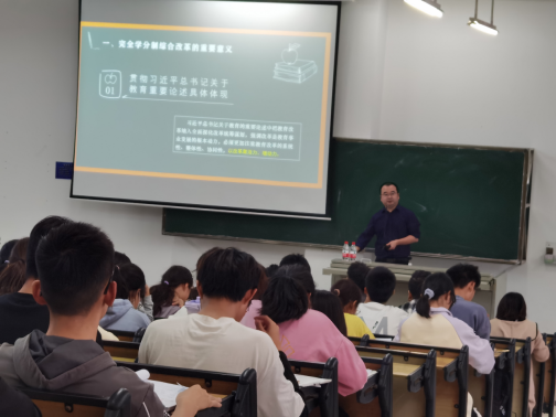 耿刚副处长就学校施行完全学分制改革的重要意义、基本内容、技术路线等方面进行了详细深入的介绍,他强调实行完全学分制改革是学校创建世界一流学科和国内一流大学,提升办学水平和人才培养质量的一项重大举措。各学院师生要提高认识,积极主动支持学校完全学分制改革政策的实施。