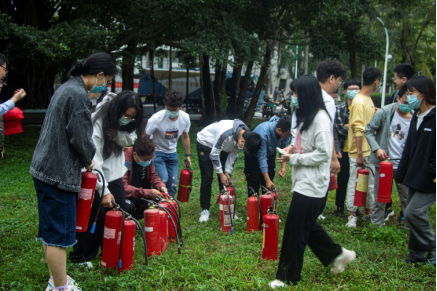 室内安全培训结束后,师生及消防科同志们来到生物楼西侧木球场草地上进行了实地灭火演练。所有师生实际操作了使用干粉灭火器灭火,并了解了灭火时的注意事项。
