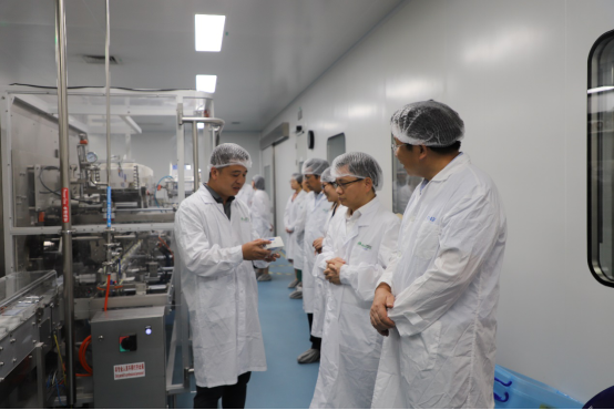 一行人参观了先声药业的厂区和主要生产线,并合影留念。