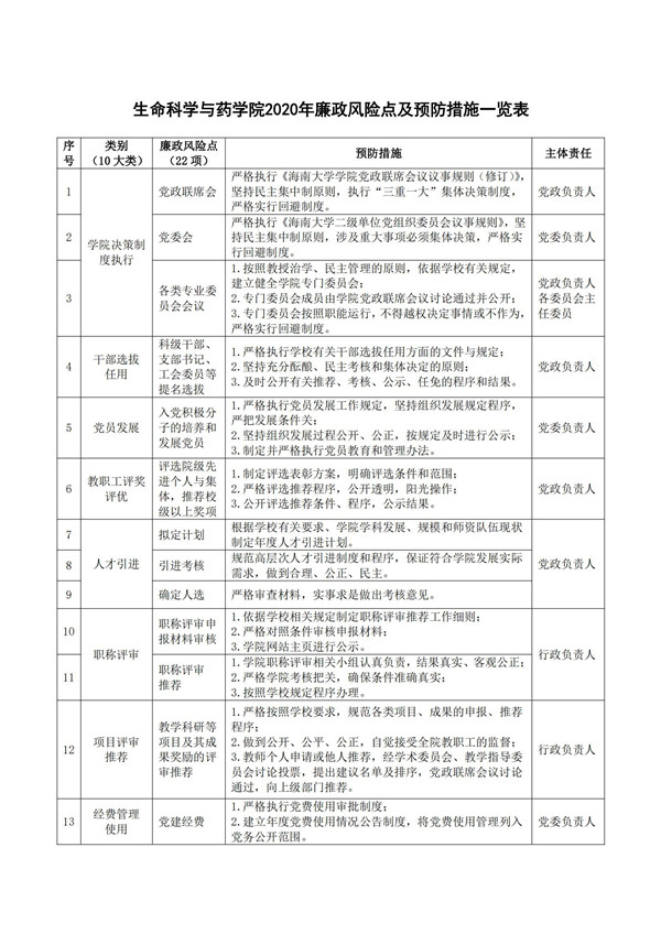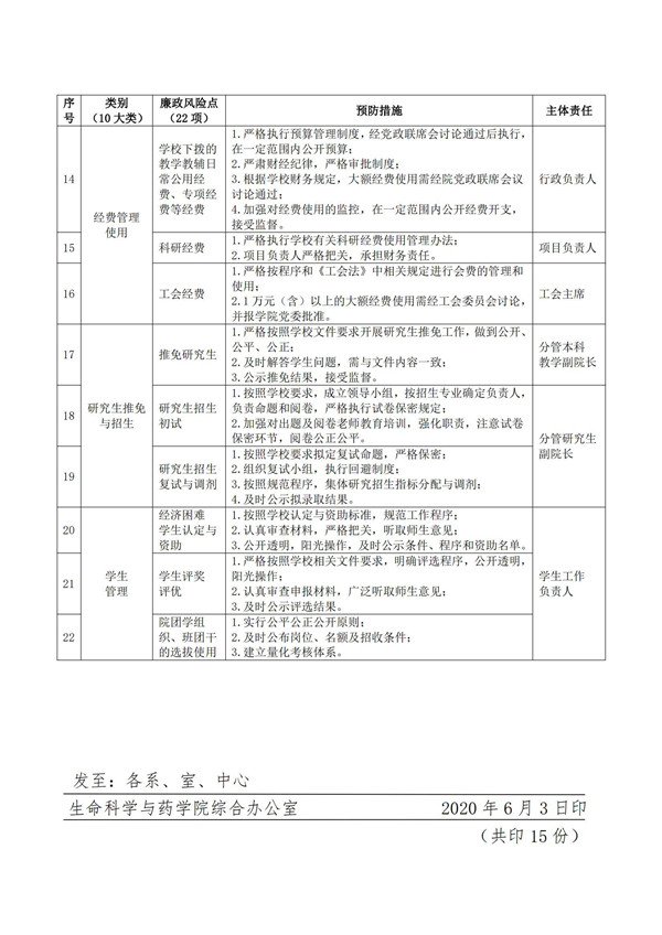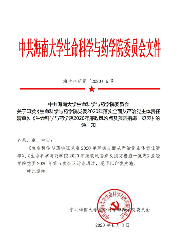 关于印发《生命科学与努努影视 党委2020年落实全面从严治党主体责任清单》、《生命科学与努努影视 2020年廉政风险点及预防措施一览表》的通知