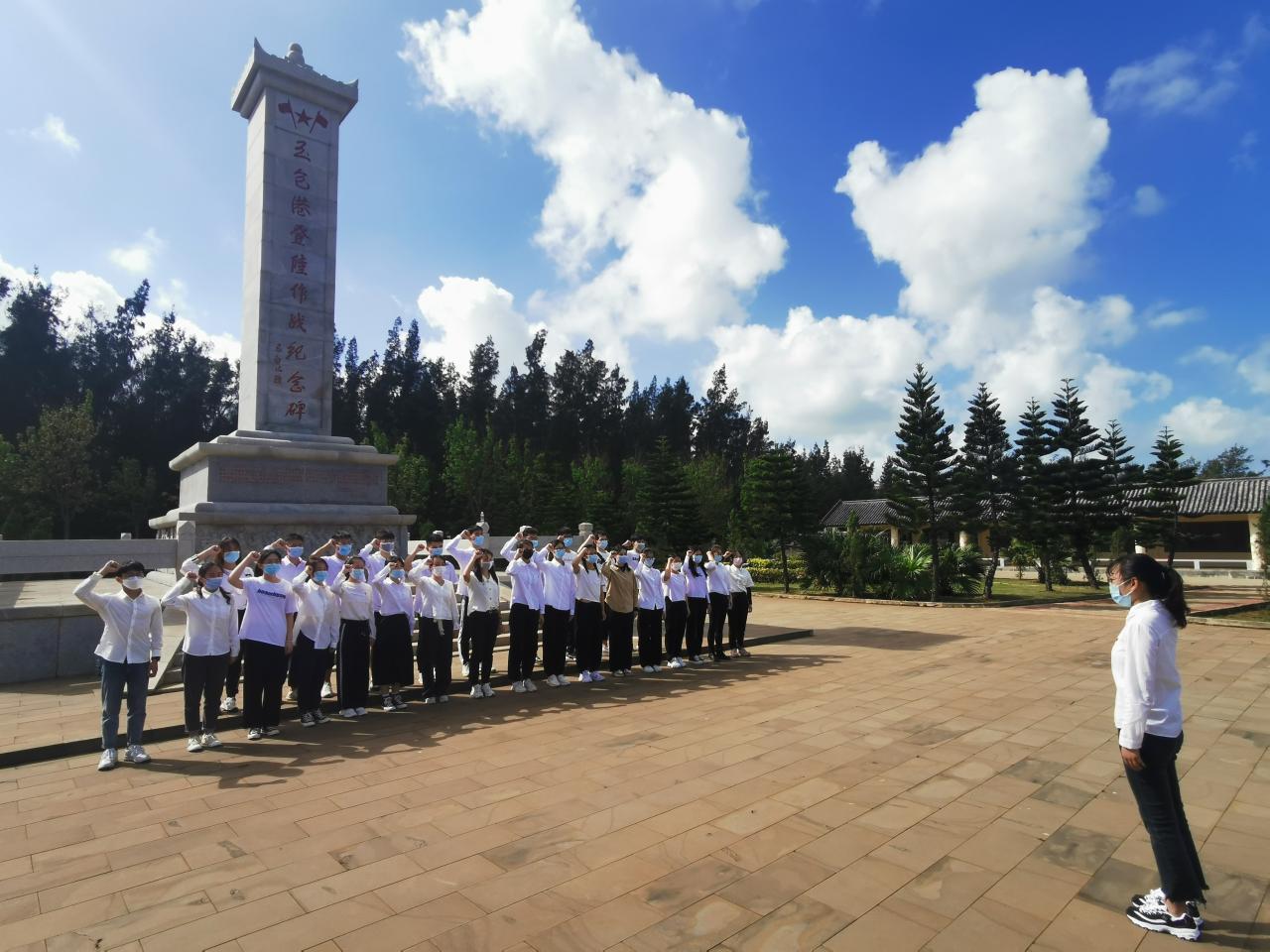 位于玉包港登陆作战纪念园中心的是一座耸天的纪念碑,碑的正面自上而下镌刻着几个大字“玉包港登陆作战纪念碑”。学习了解完玉包港登陆作战的历史,全体党员同志们深感革命先烈们的英勇无畏与艰苦作战,为表达对先烈的感激与缅怀,在纪念碑前全体党员在纪念碑前默哀追思。随后,在药学制药工程专业本科生党支部成员骆蒙的带领下,全体党员在纪念碑前倾情重温了入党誓词,时刻提醒自己不忘初心,做合格党员,并合影留念。