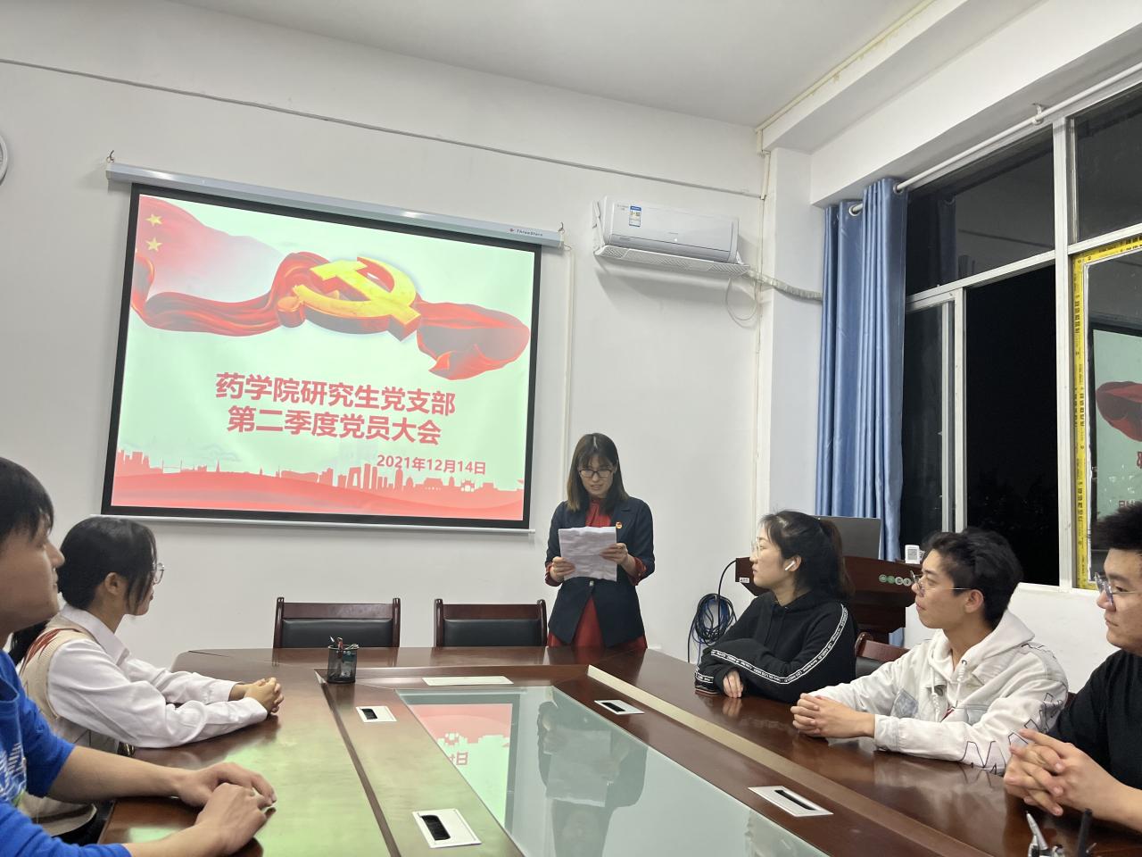 研究生党支部在学院楼608会议室召开2021年12月党员大会暨接收预备党员大会和预备党员转正大会。会议共有14位党员和3位发展对象参加,1位党员因病请假缺席。会议上党员人数超过应到会有表决权人数的半数,符合大会召开条件。会议由支部书记黄玲主持。