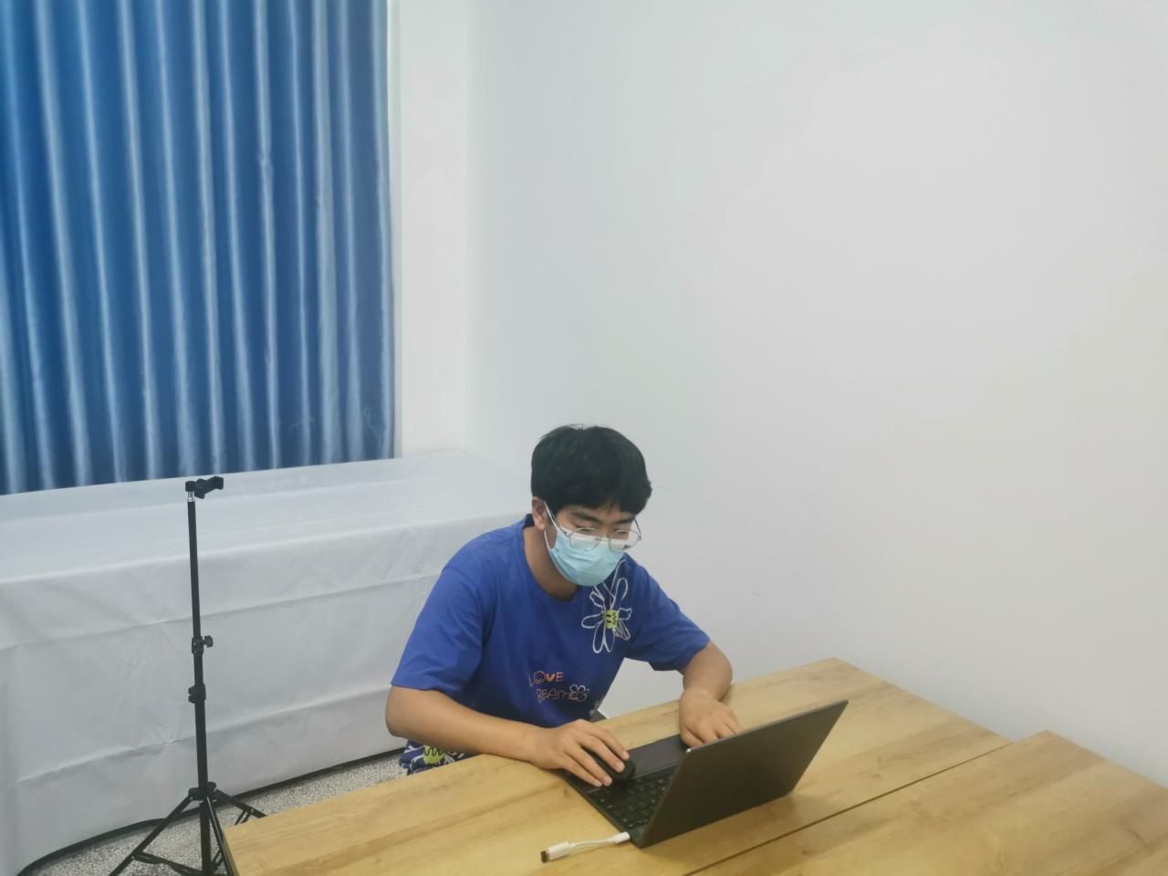 复试房间环境安静舒适整洁,配备无线网络、办公桌椅、二机位三脚架、复试背景板以及相关办公用品等。同时,为错峰高效使用,学院辅导员谢天宇详细制定完善在线预约表格,24小时保障房间需求。
