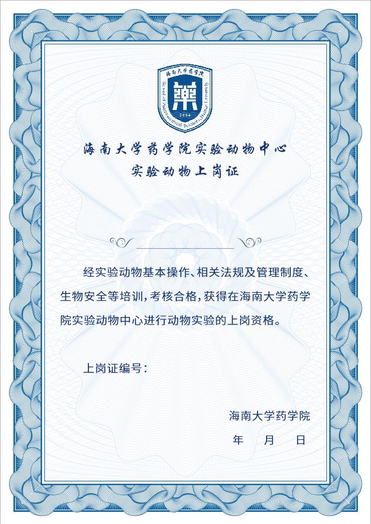 在本中心进行动物实验的人员均需要参加实验动物上岗证培训并考核通过,取得实验动物上岗证。